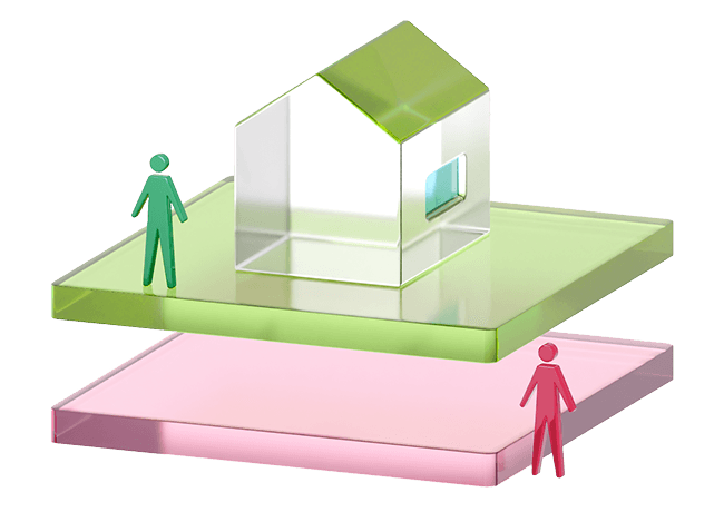 複数人が1つの不動産を各割合に応じて共同で所有することを「共有持分物件」といいます。持分のみの買受けも可能です。